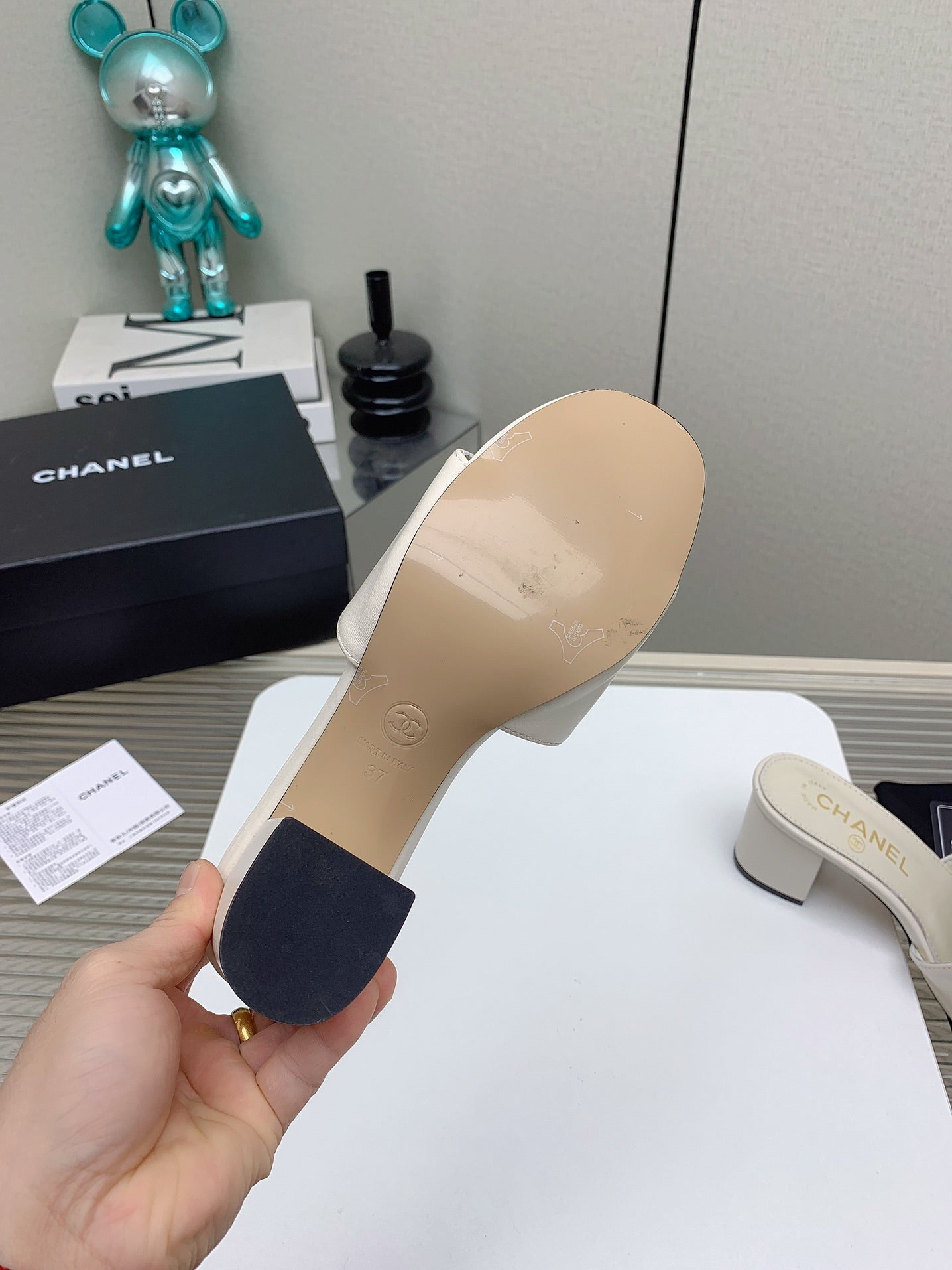 CC Mule Sandals 50mm In White Quilted Lambskin 148944