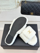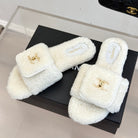 Chanel 25 Buckle Flip-up Thick-soled Slippers White Wool 465383