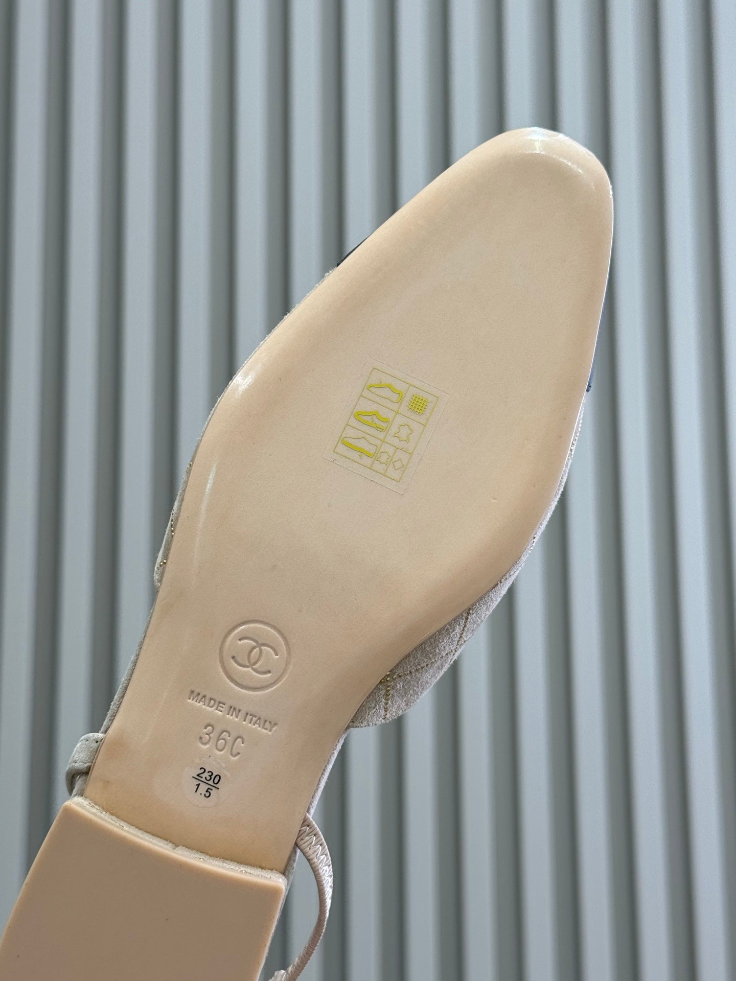 Chanel 25 Plaid Slingback Flat Beige Black Suede Sheepskin 468362