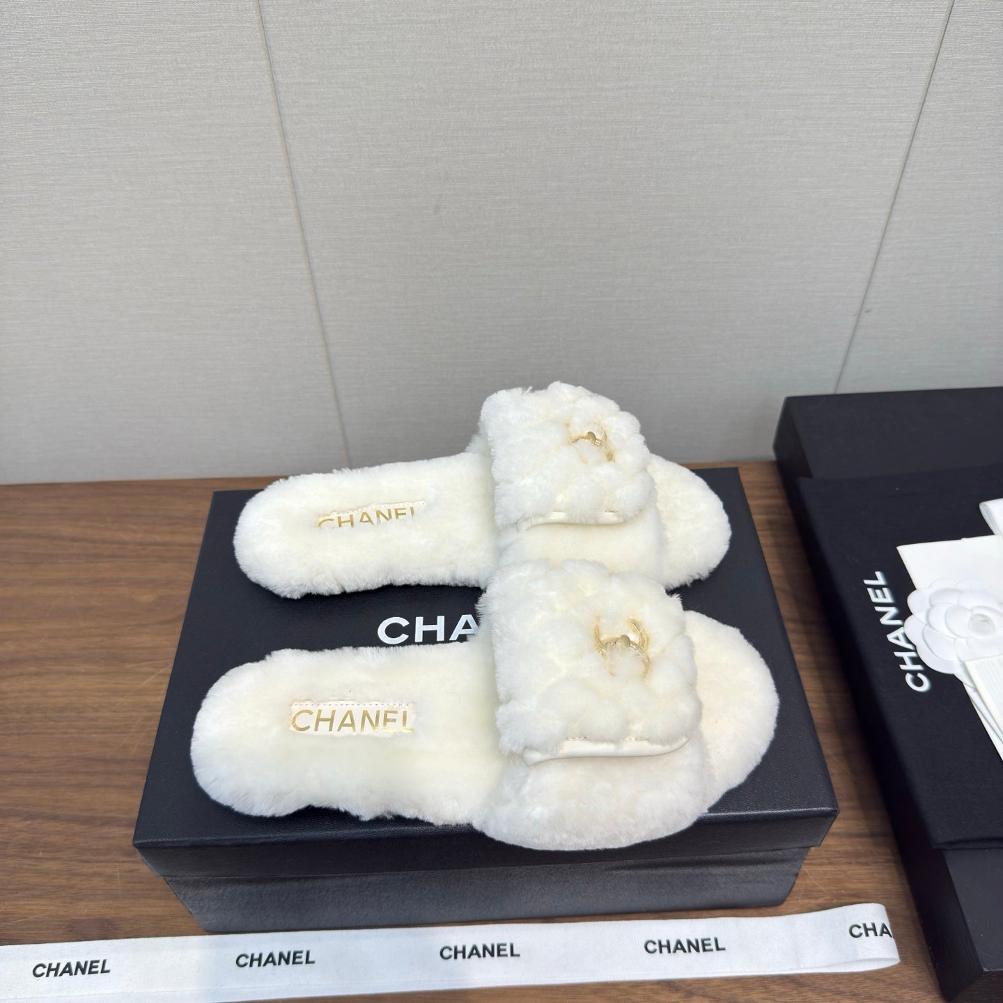 Chanel 25 Slipper White Smooth Lambwool 465603