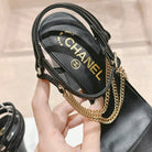 Double C Leather High Heel Sandals Black