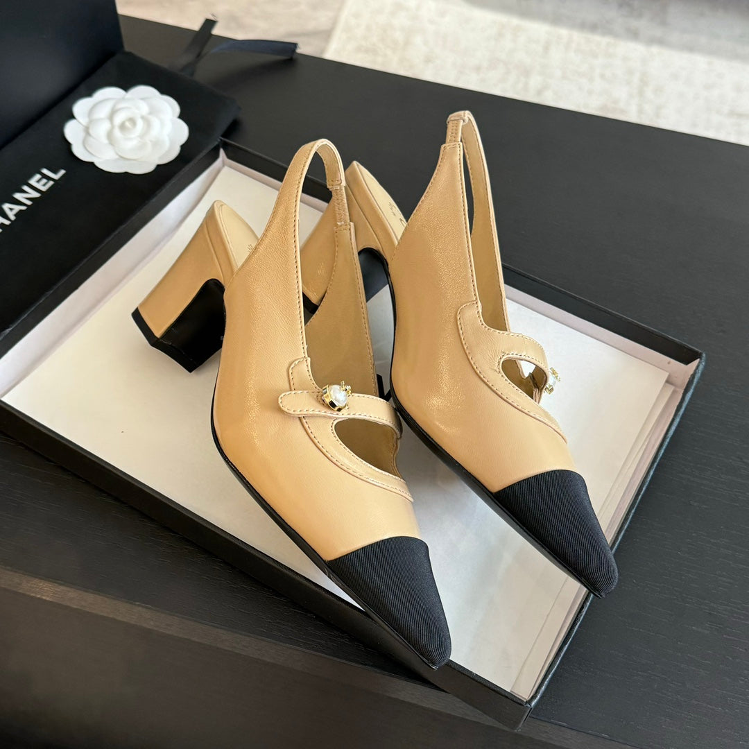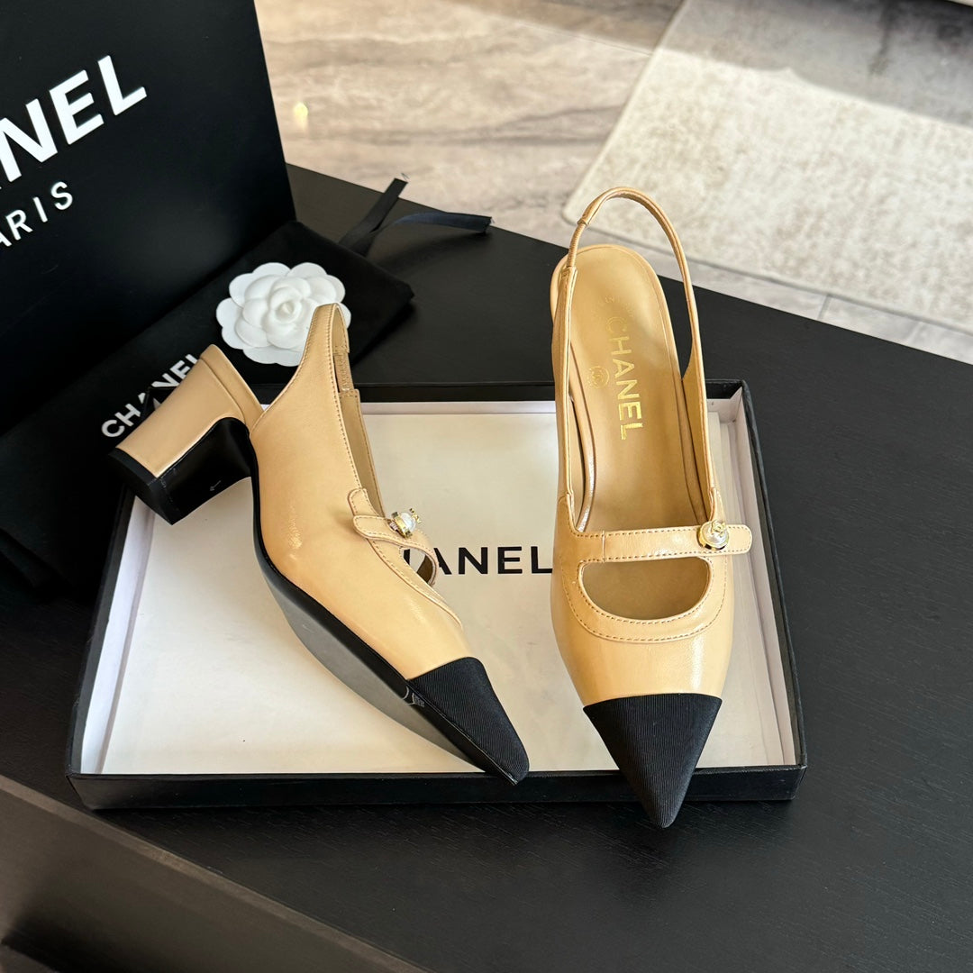 Double C WOMEN'S Slingback SPIRIT TOE Tan brown Lambskin