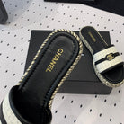 mule sandal white tweed black calfskin
