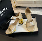 Platform Peep-Toe Sandals Beige Cream Lambskin
