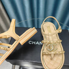 sandal leather strap beige quilted calfskin gold chain