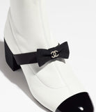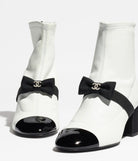 short boots white black stretch lambskin & patent calfskin