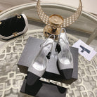 slingback 6.5 glitter silver black grosgrain