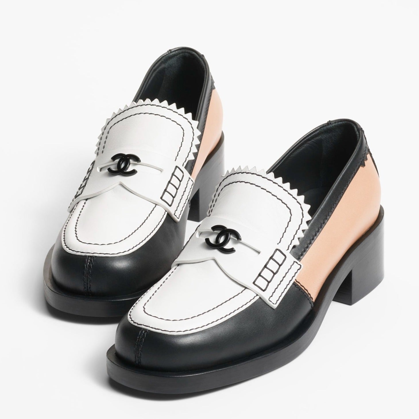 moccasins white black beige calfskin