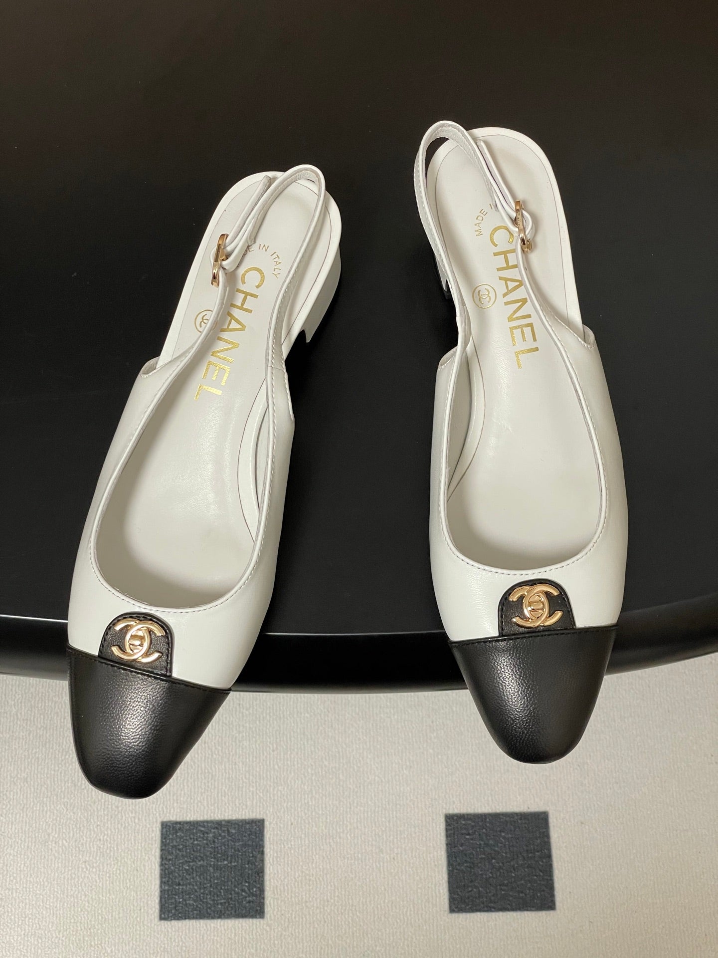 Chanel 25 Slingback 30mm White Black Lambskin 473214