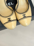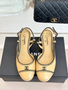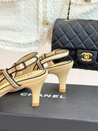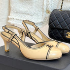 Chanel 25 Slingback Beige Black Sheepskin 473058