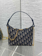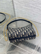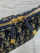 Dior 2025 Bag 19cm Navy Blue mix Beige Oblique Fabric mix Leather 272830
