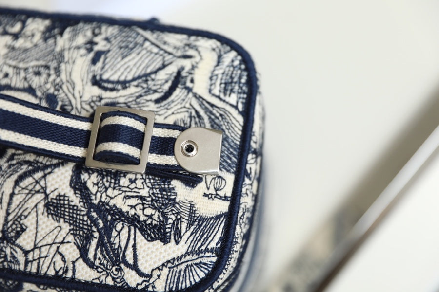 Dior 2025 Diortravel Vanity Bag 24cm Blue mix White Canvas