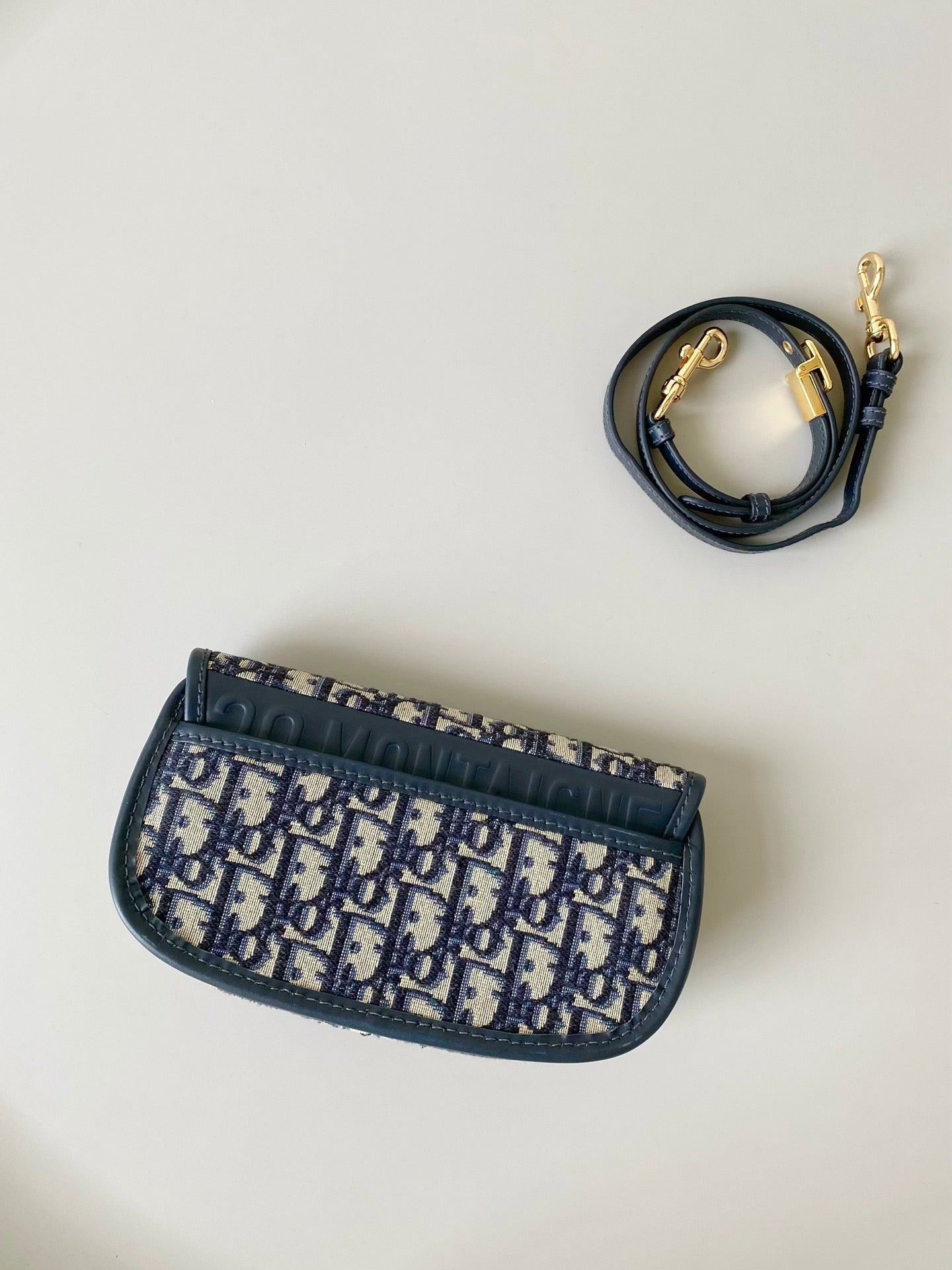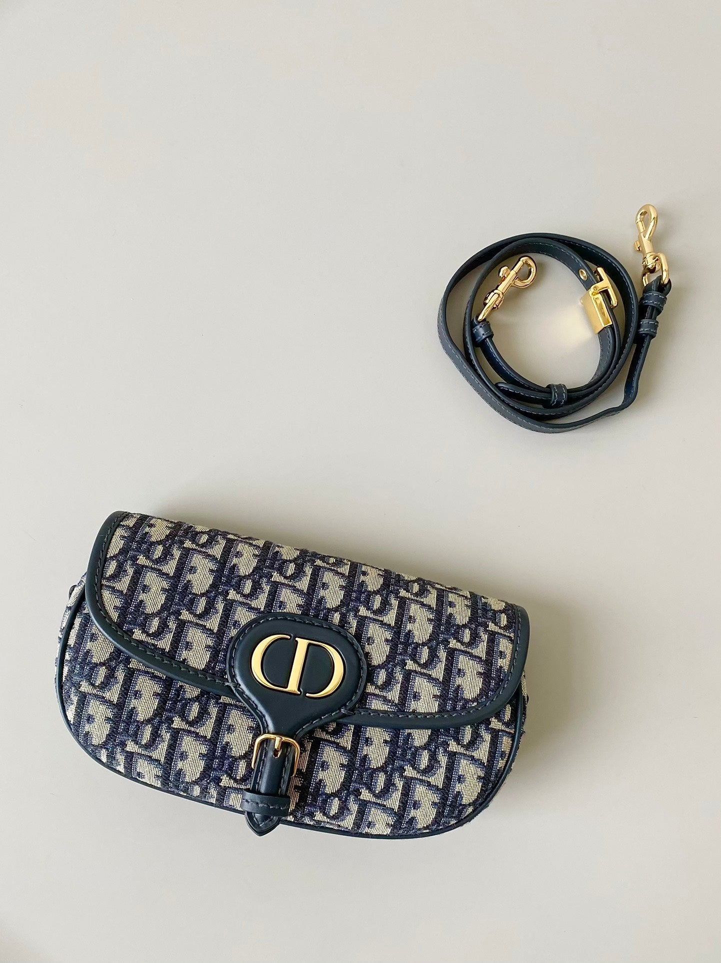 SMALL CD BOBBY 18CM BLUE OBLIQUE CANVAS GOLD HARDWARE