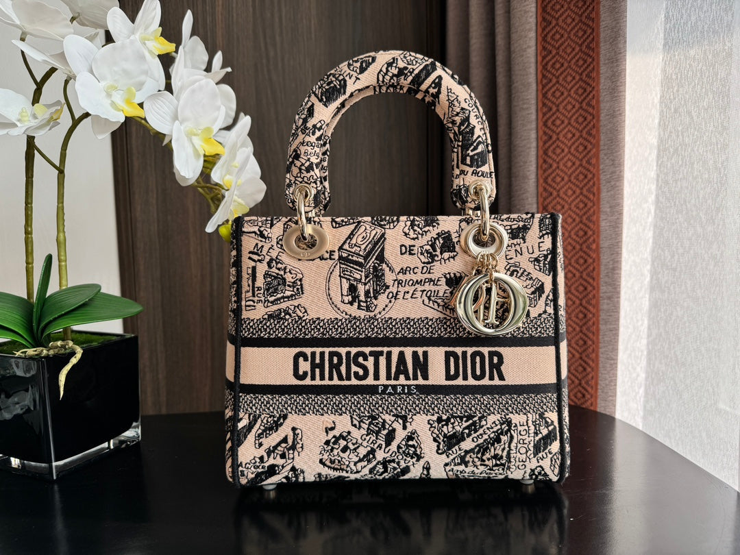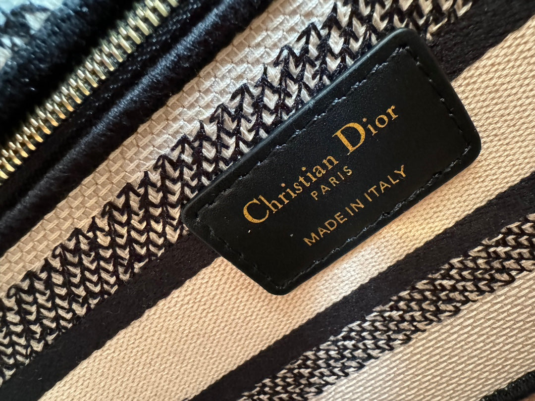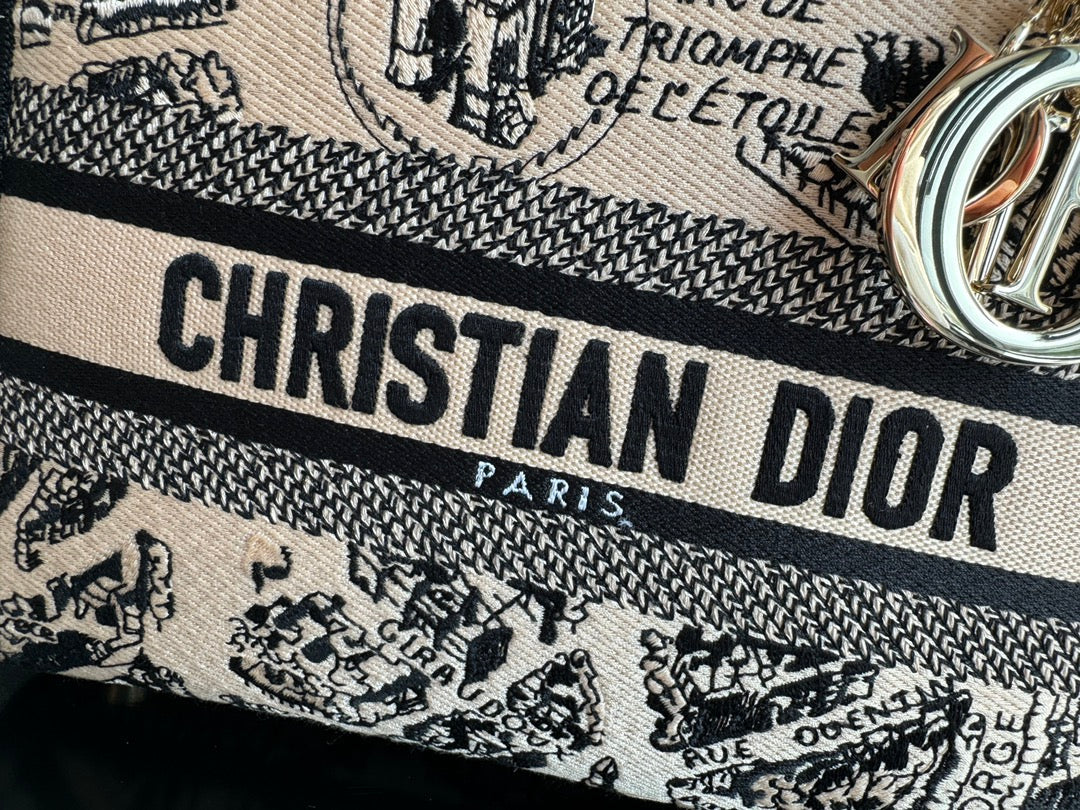 MEDIUM CD BOBBY 22CM BLUE OBLIQUE EMBROIDEDERED CANVAS GOLD HARDWARE