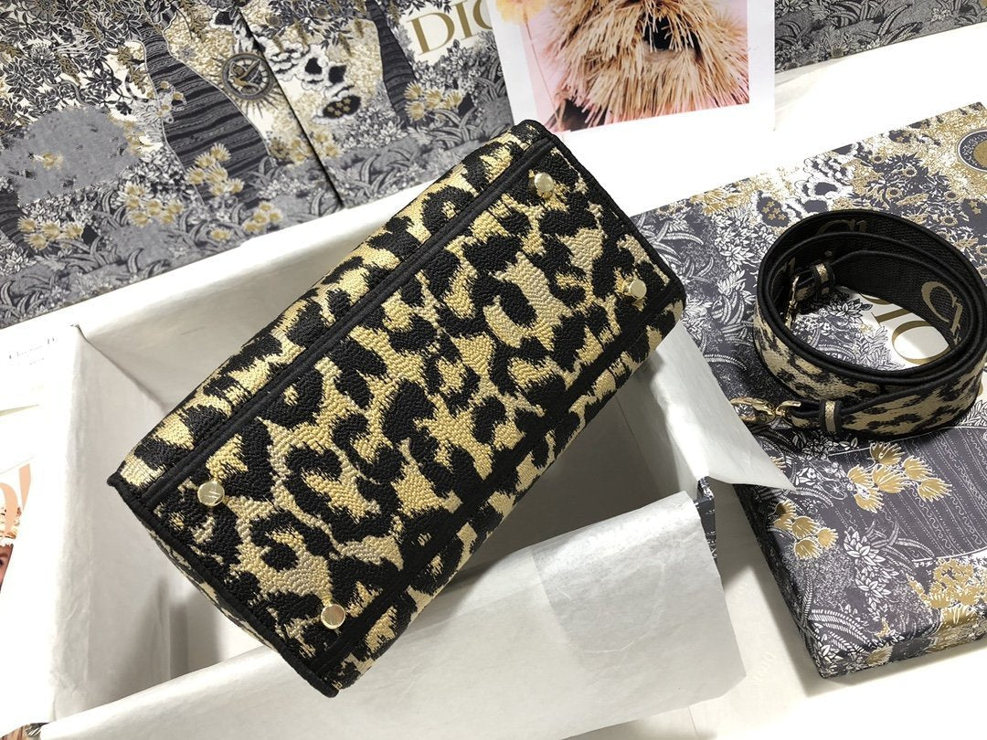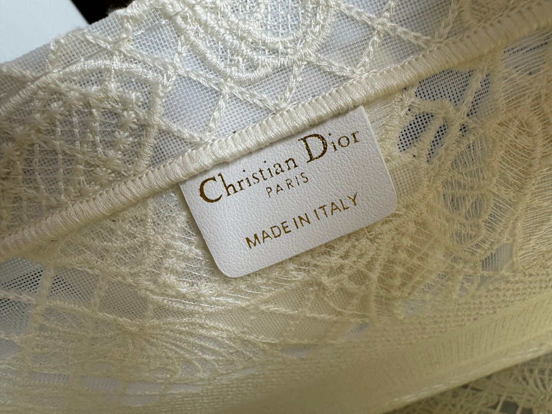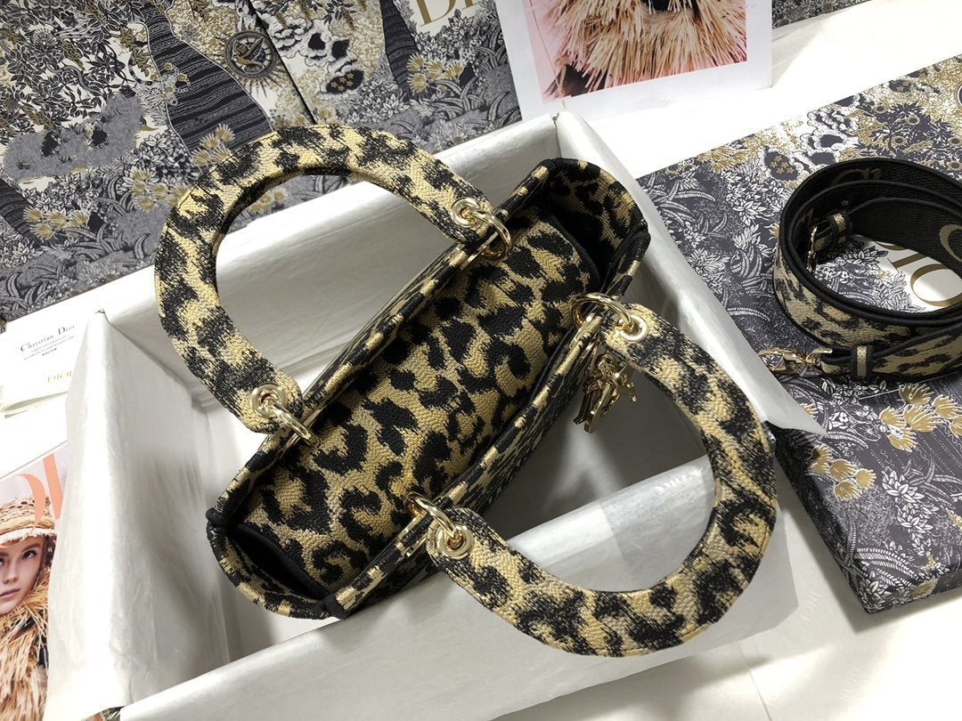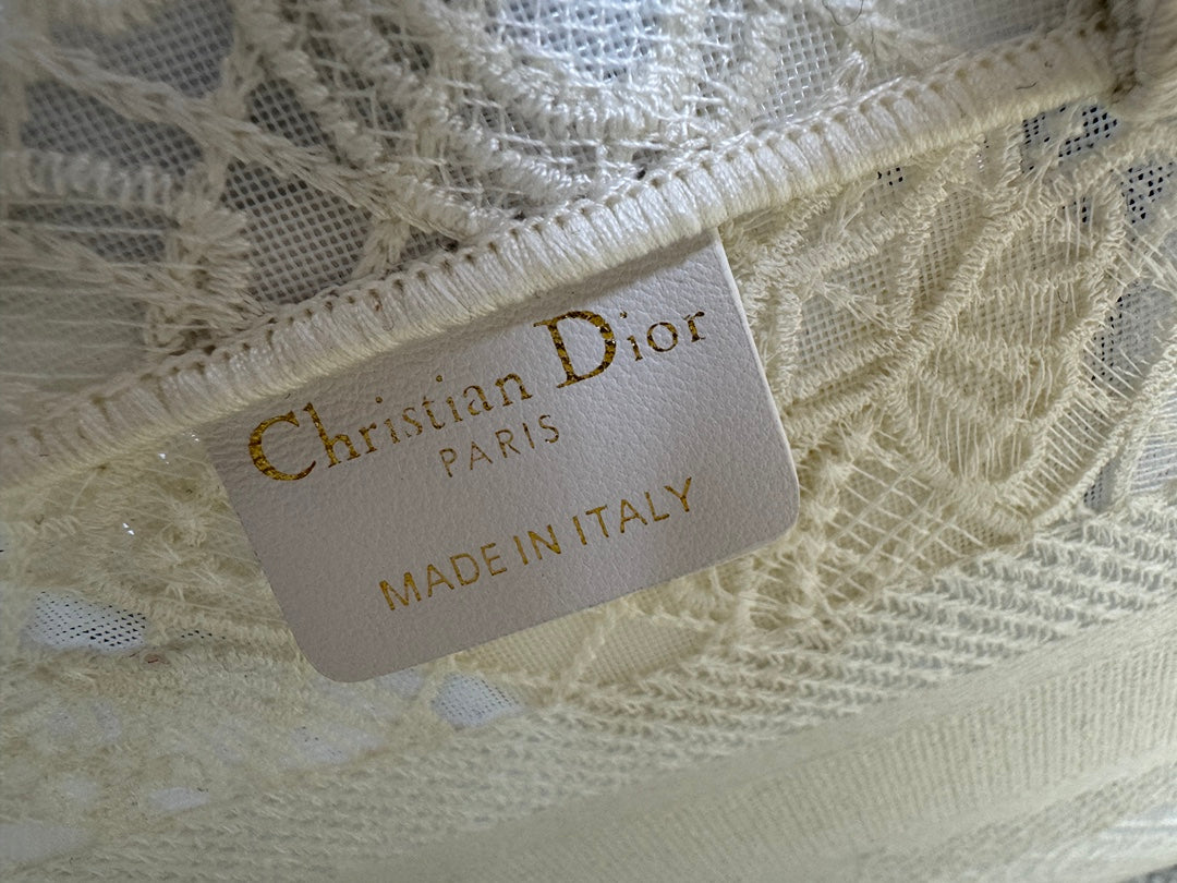 MEDIUM LADY D-LITE BEIGE CANNAGE EMBROIDERY