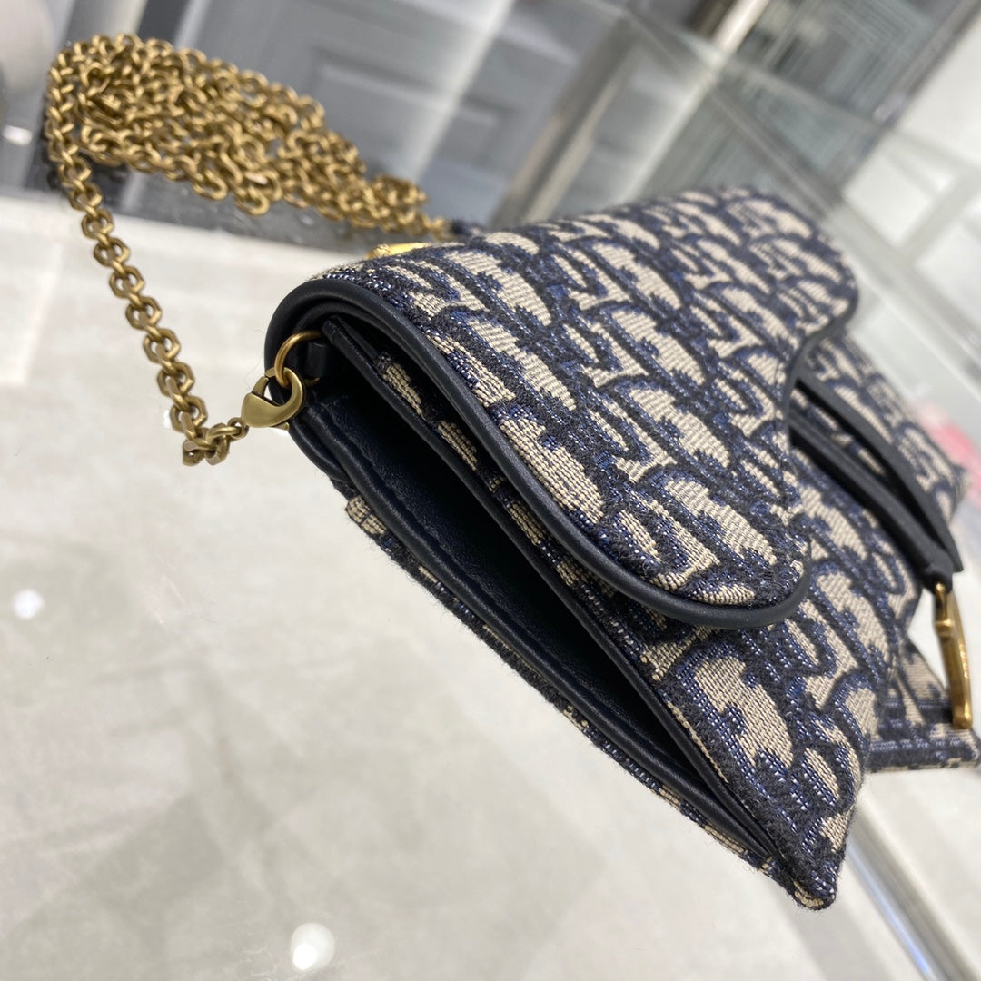 CD Saddle Wallet 10.5cm Blue Obique Embroidery