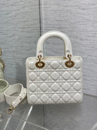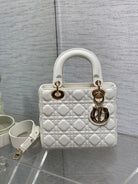 CD Lady Bag 20cm White Lambskin Light Gold Hardware