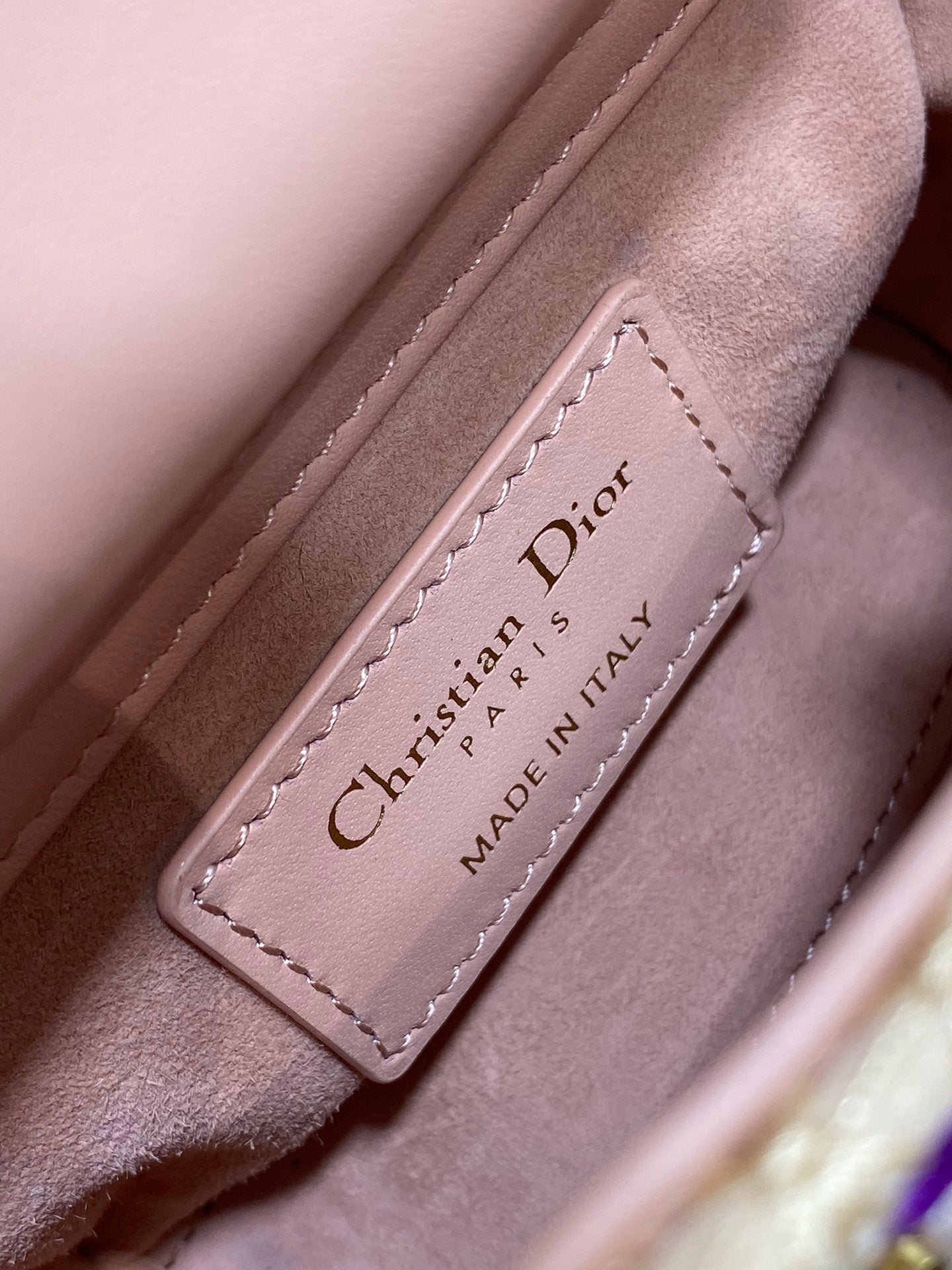 Lady Micro Bag 10cm Pink Lambskin Gold Fabric