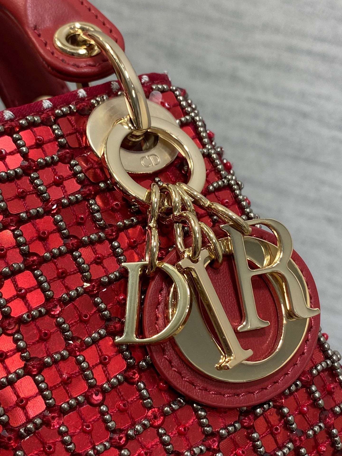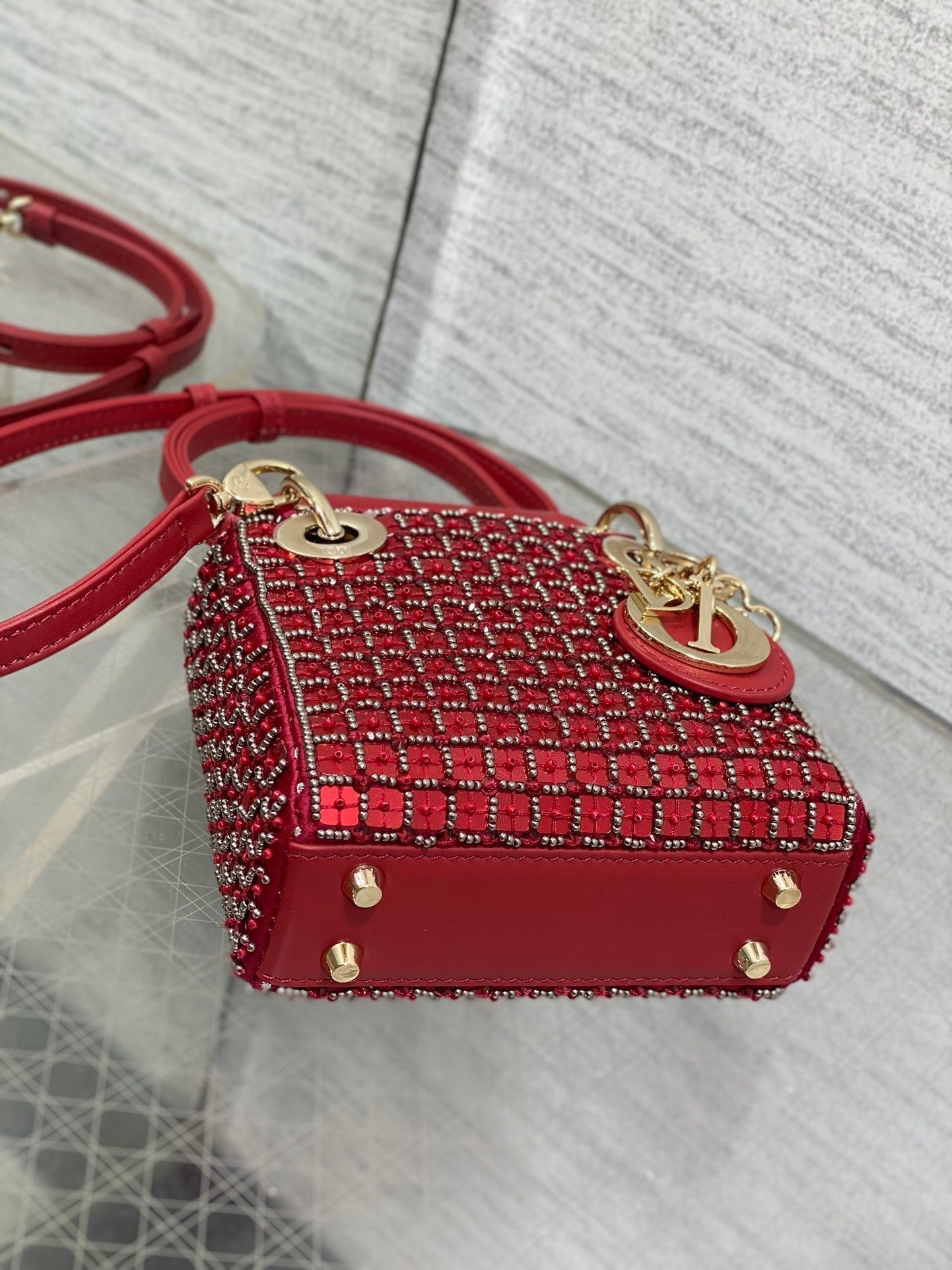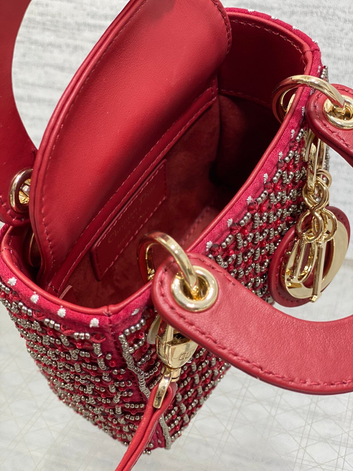 Lady Micro Bag 10cm Red Fabric Embelished Bead