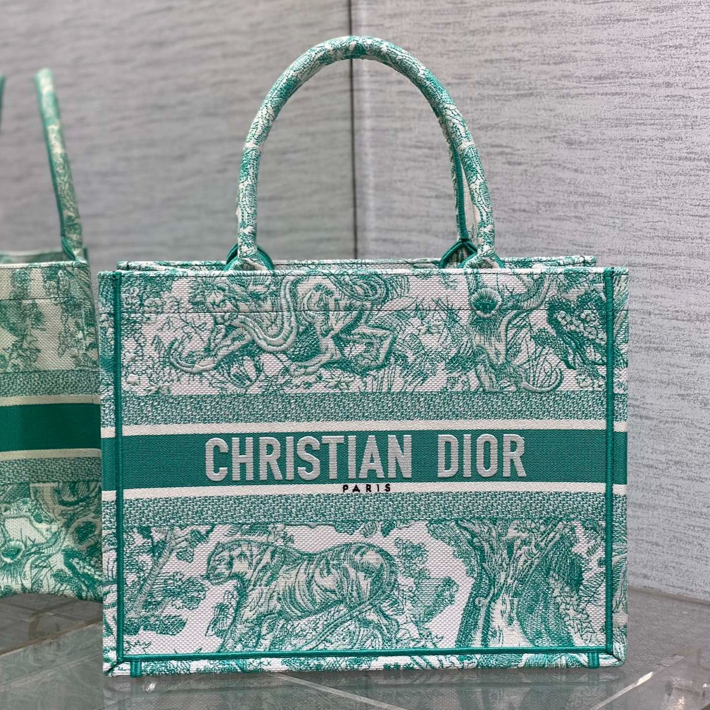 medium dioriviera book tote 36 aquamarina tiger embroidery canvas