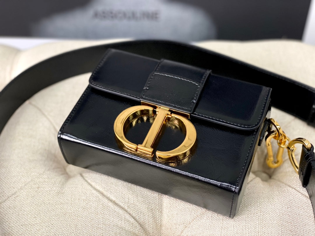 MONTAIGNE 19 HANDBAG IN BLACK CALFSKIN