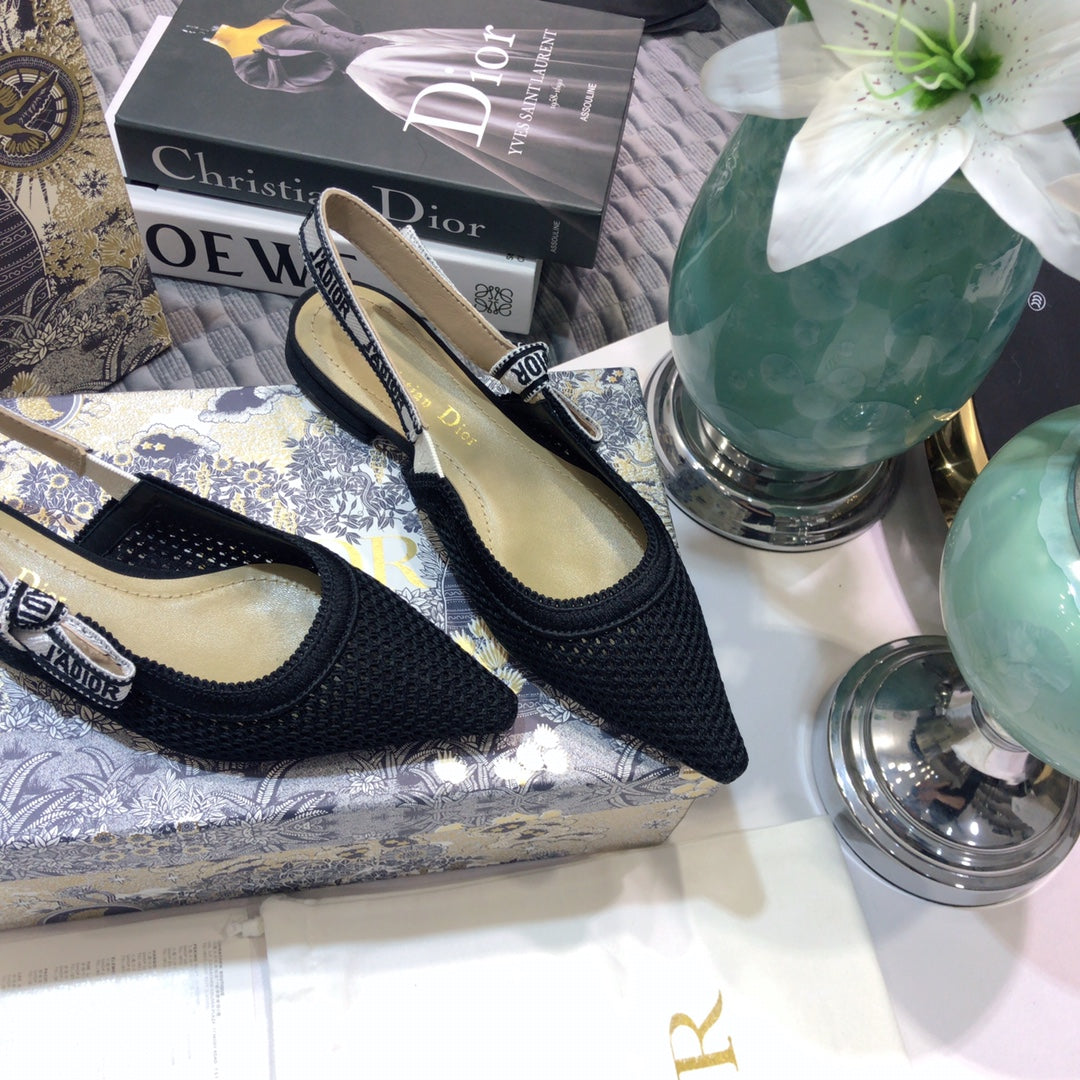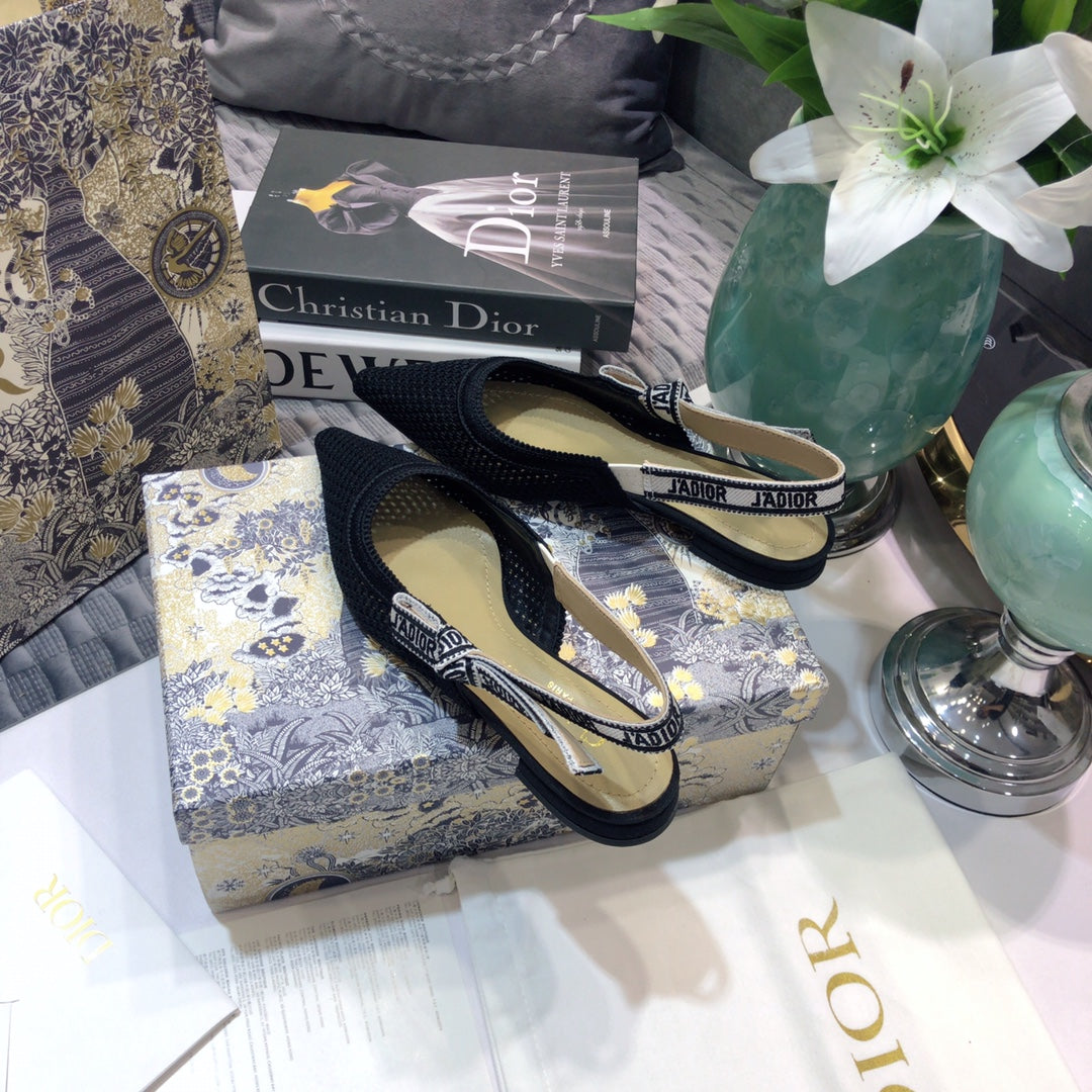 JAdior slingback flat full transparent mesh black embroidered cotton