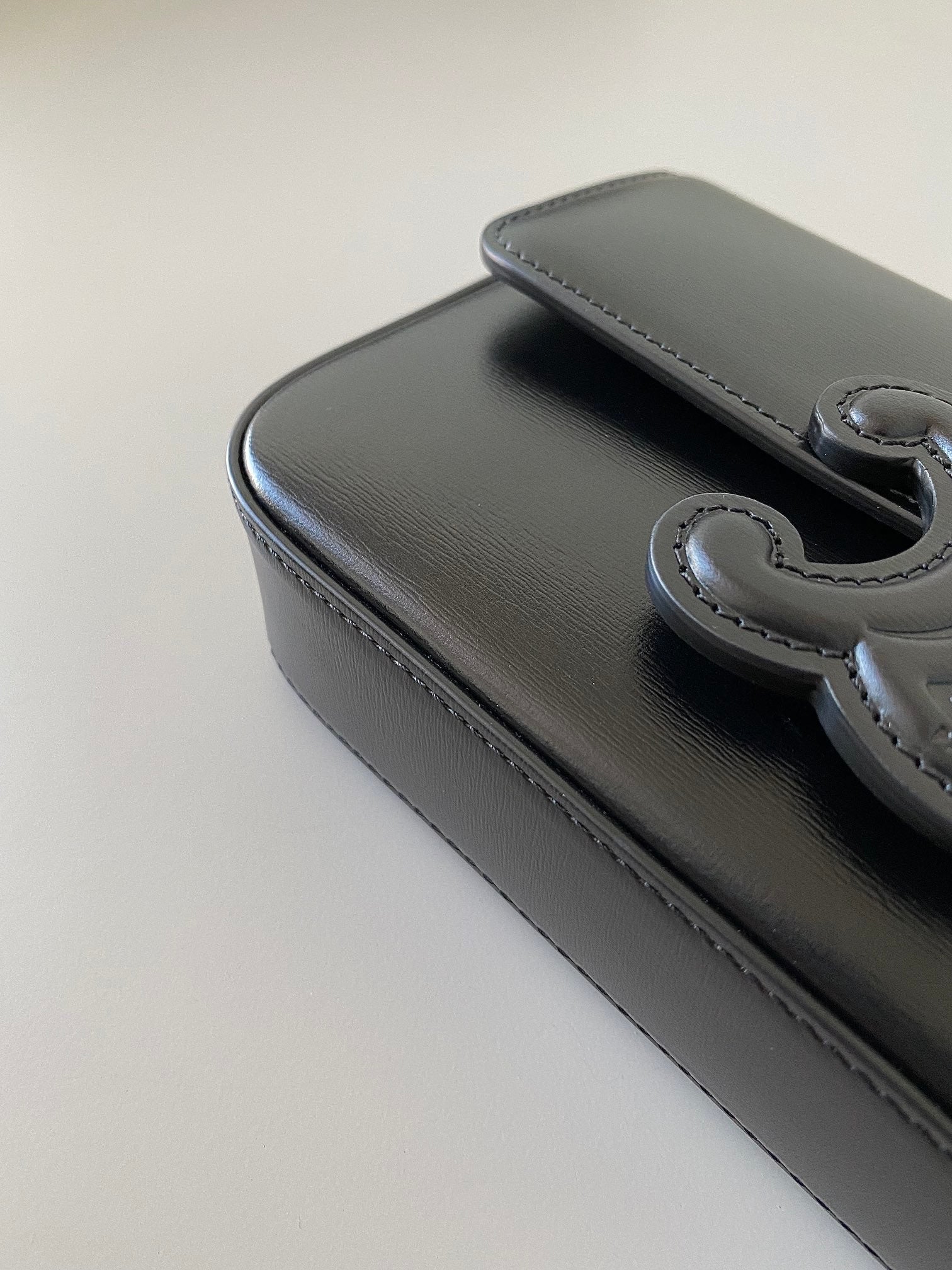 20 CHAIN EMBOSSED ARMPIT BAG BLACK CALFSKIN