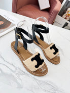 Celine 25C Lympia Sandal Beige mix Black Fabric with Calfskin 238163
