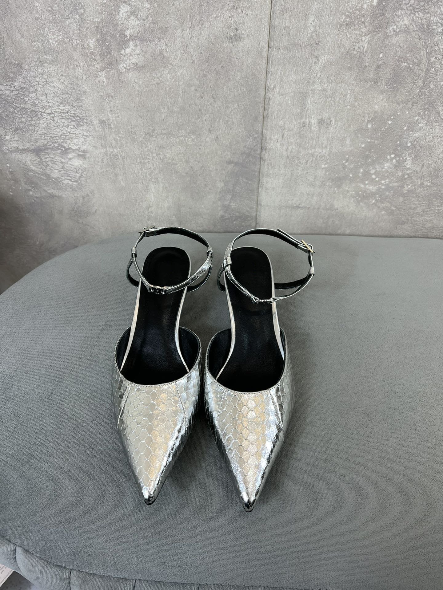 cl kitten 50 silver metalic calfskin