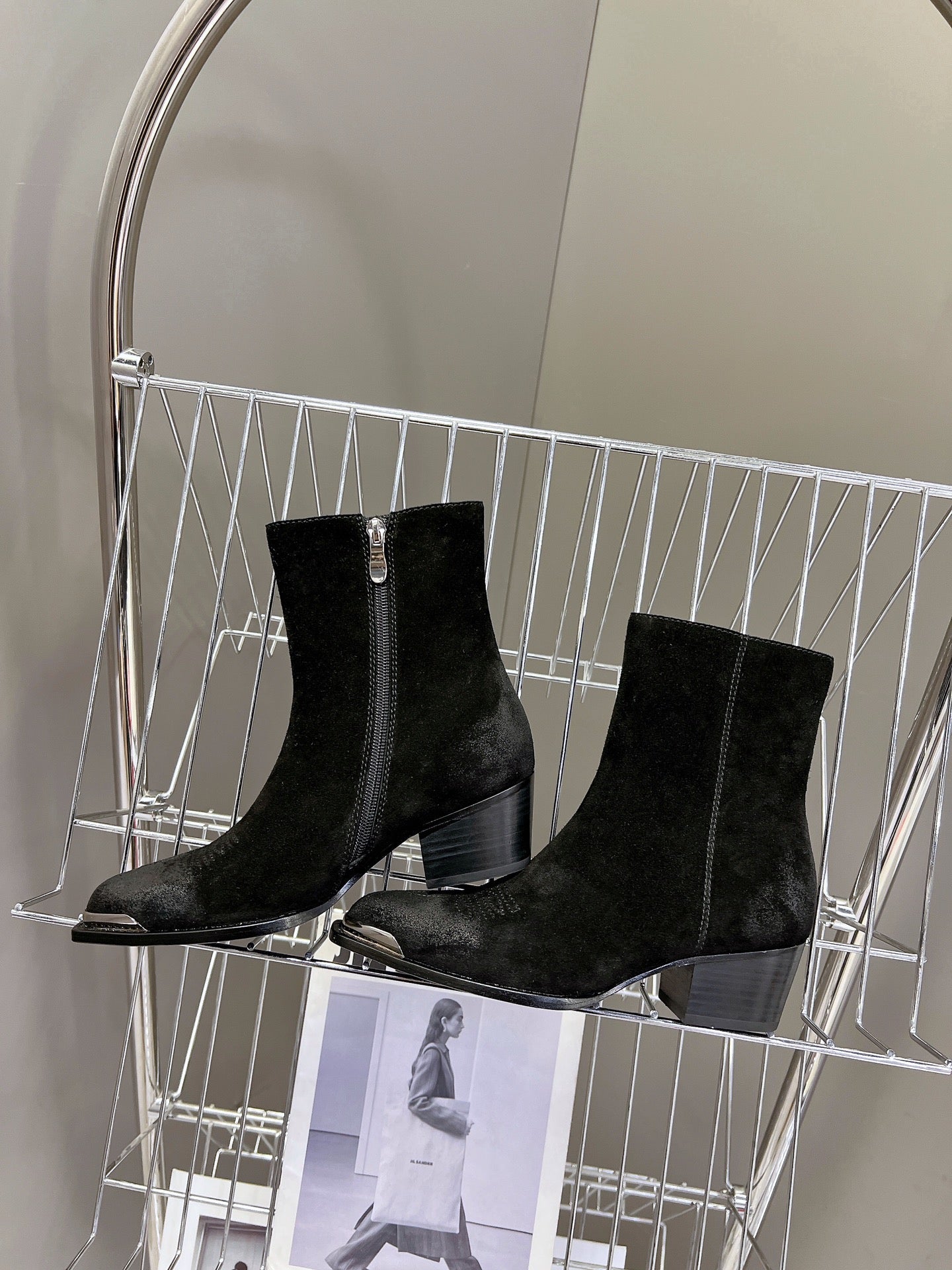 CELINE 25 Cowboy Boots Black Suede 434418