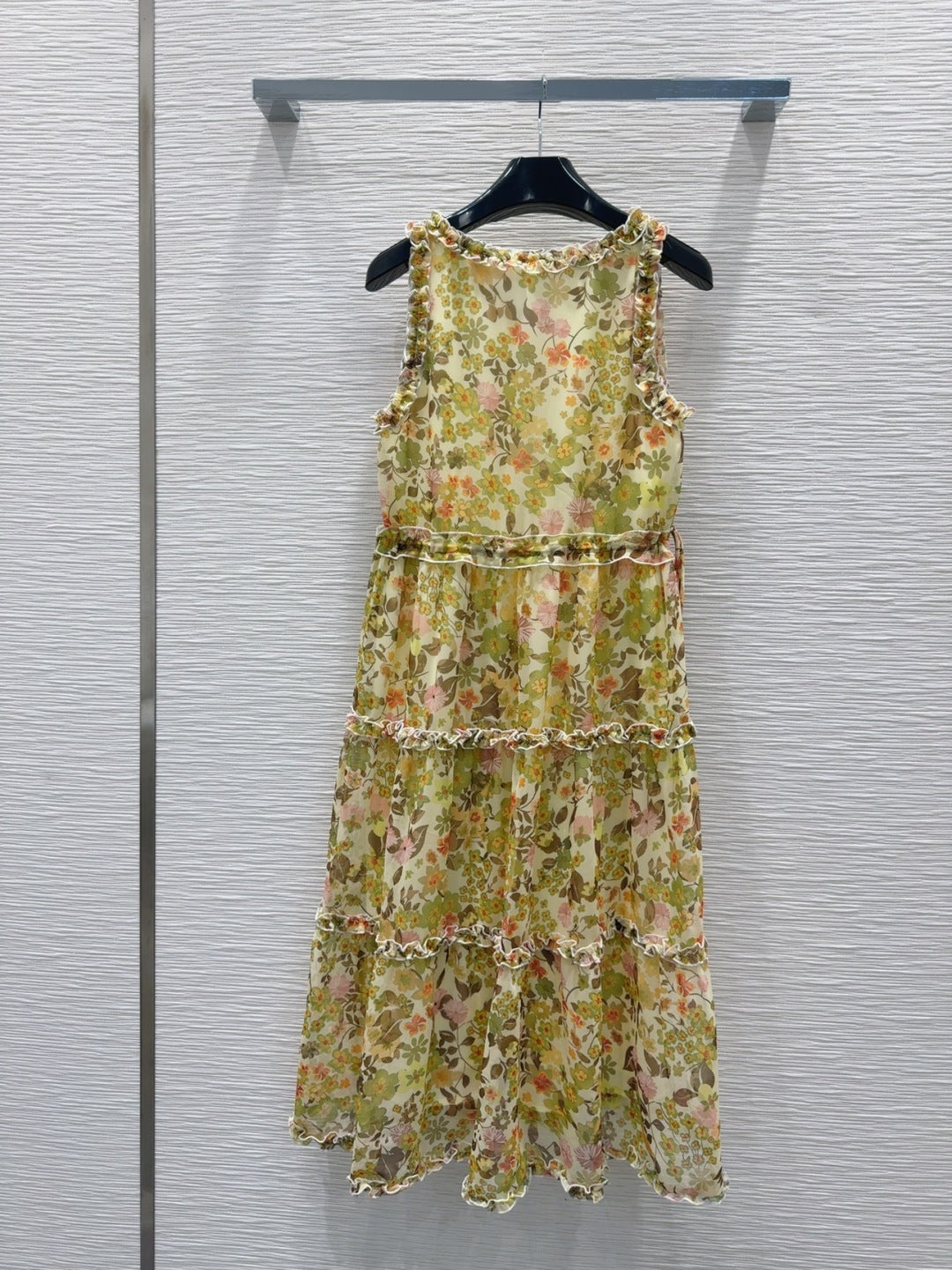 Celine 25 Floral Sleeveless Dress Green mix colors Polyester