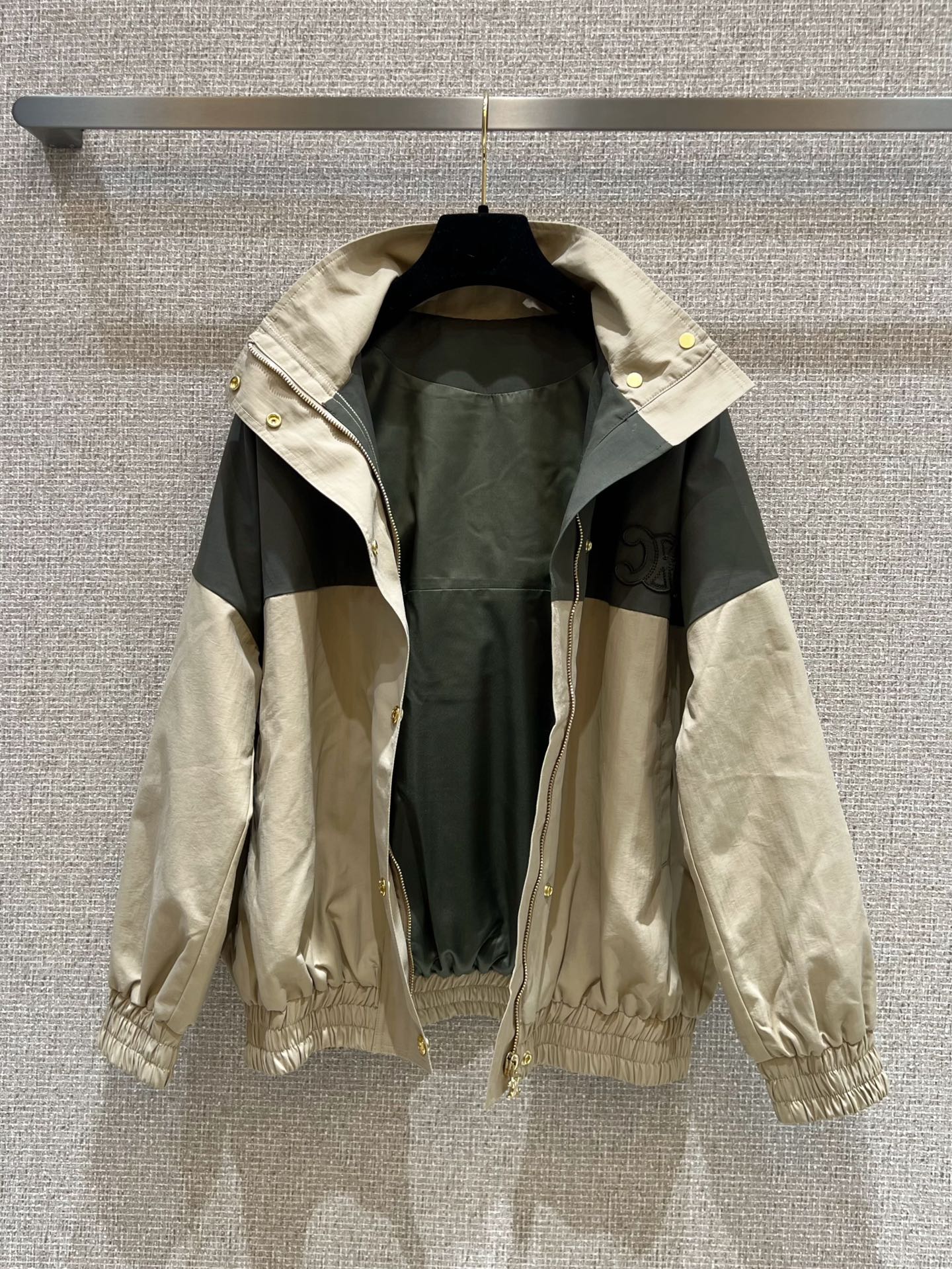 Celine 25 Jacket Beige Green Nylon Polyester