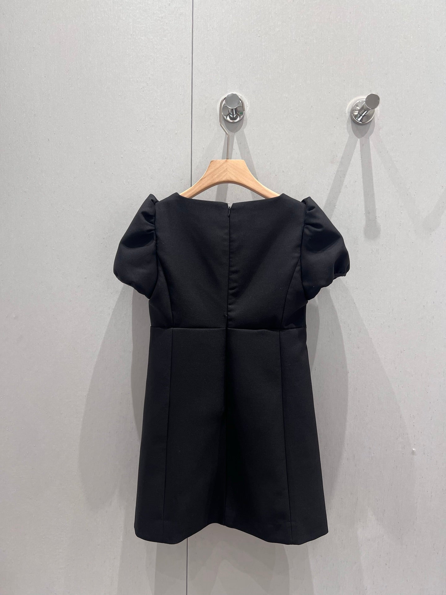 Celine 25 Rhinestone Button Mini Dress Black Wool 220842