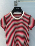 Celine 25 Striped Short-sleeved T-shirt Red White mix Black cotton