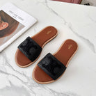 Celine 25C Slippers Black Fabric with Calfskin 238155