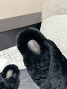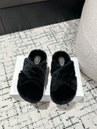 CROSS STRAP SLIPPER IN BLACK SHEARLING