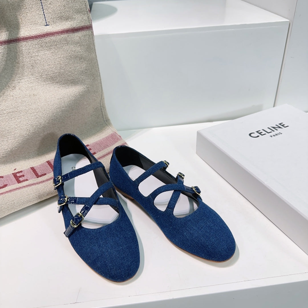 CELINE 25C Slingback Flat Demin Blue Fabric 236746