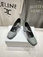 MEDIUM - HEEL MARY JANE SHOES IN SMOKE GREY GLOSSY CALFSKIN