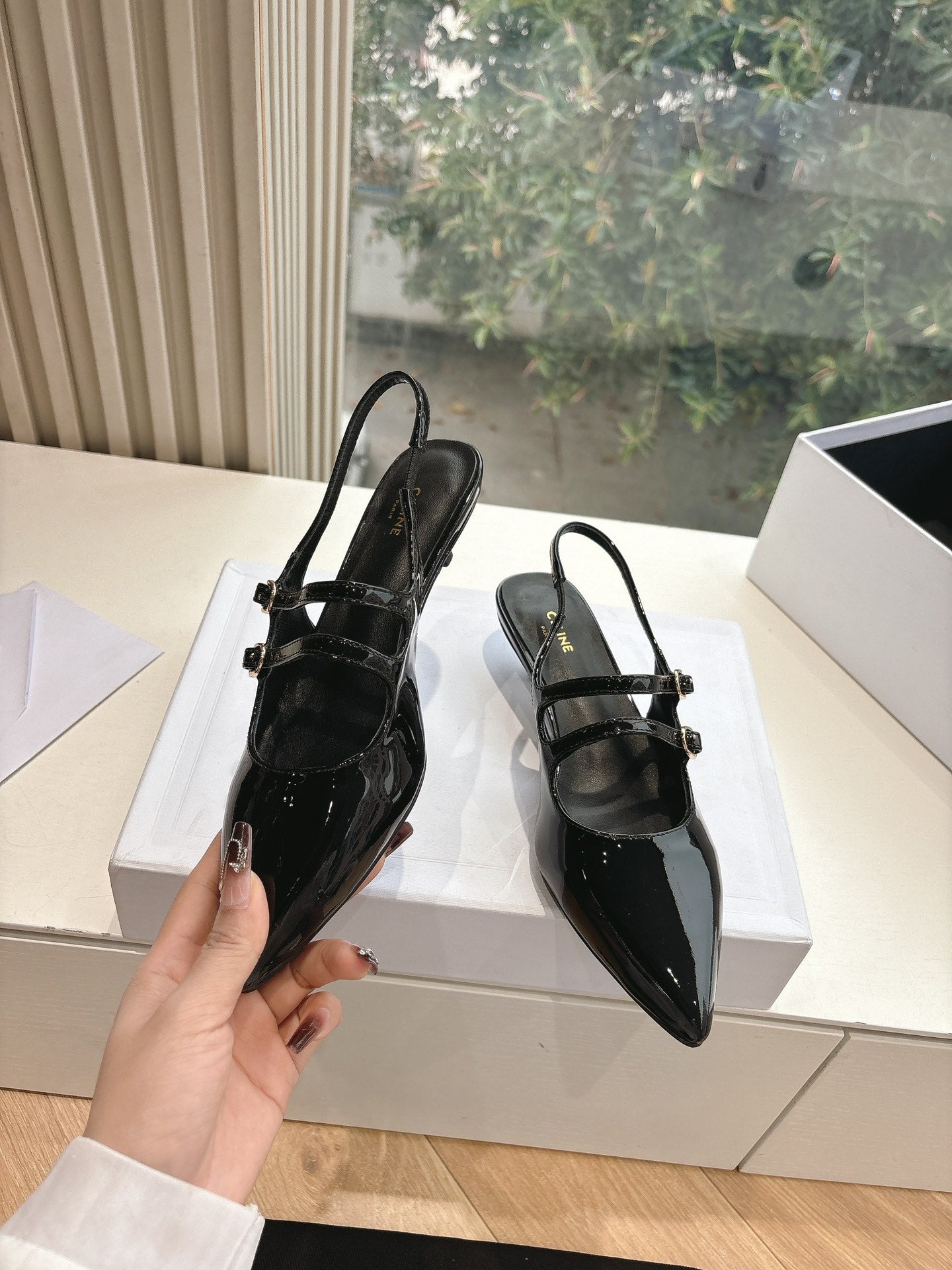 WOMEN'S SANDALS WITH ROUND TOE GLOSSY BLACK SPECIFIC COWHIDE