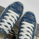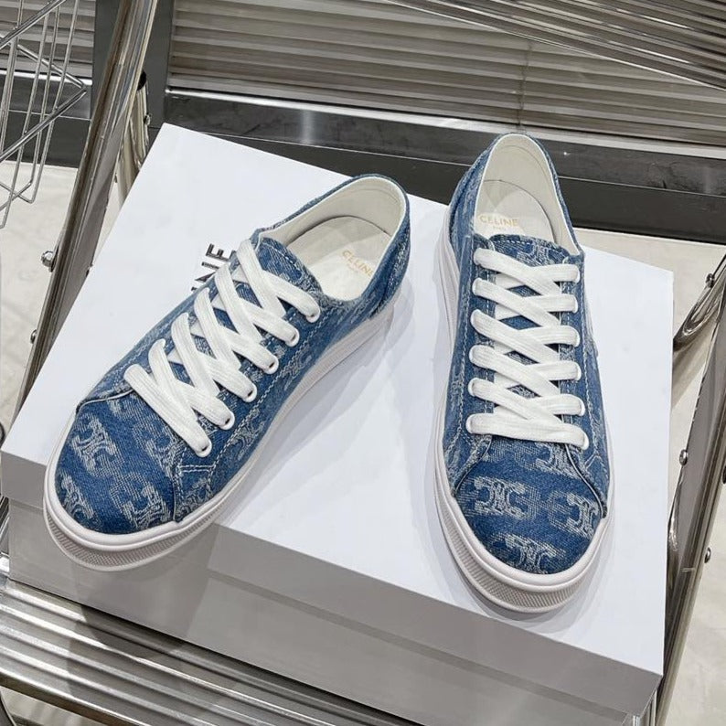 JANE SNEAKERS LOW LACE-UP WITH TRIOMPHE PATCH IN CANVAS AND CALFSKIN DETAIL DENIM/ WHITE LOGO