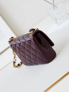 CC 24B Mini Flap Bag 20cm Burgundy Lambskin Gold Hardware