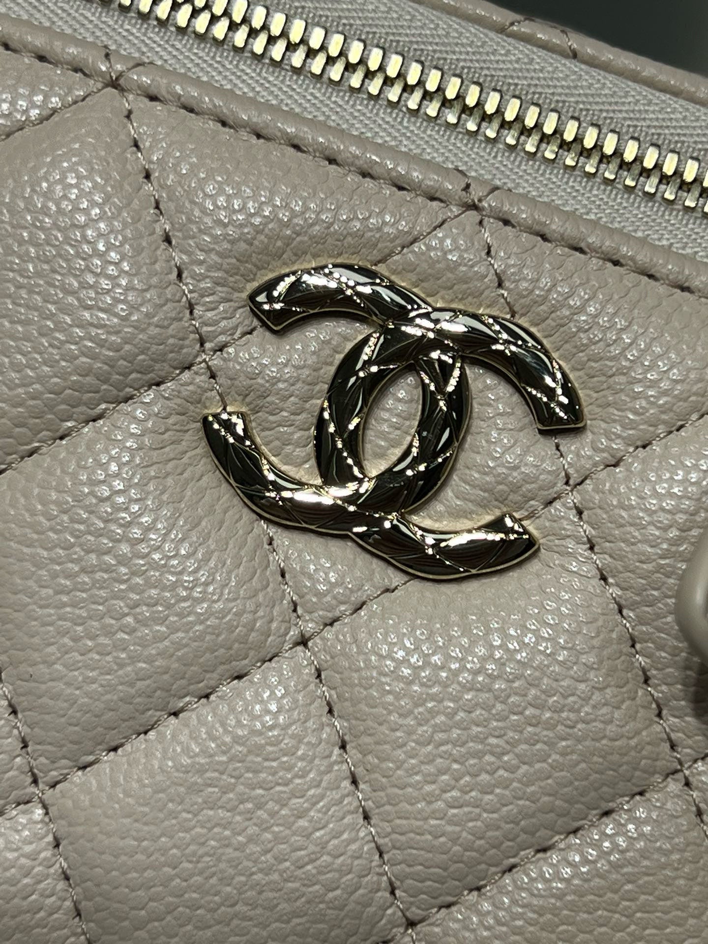CC 25S Small Vanity 17cm Beige Grained Calfskin Light Gold Hardware