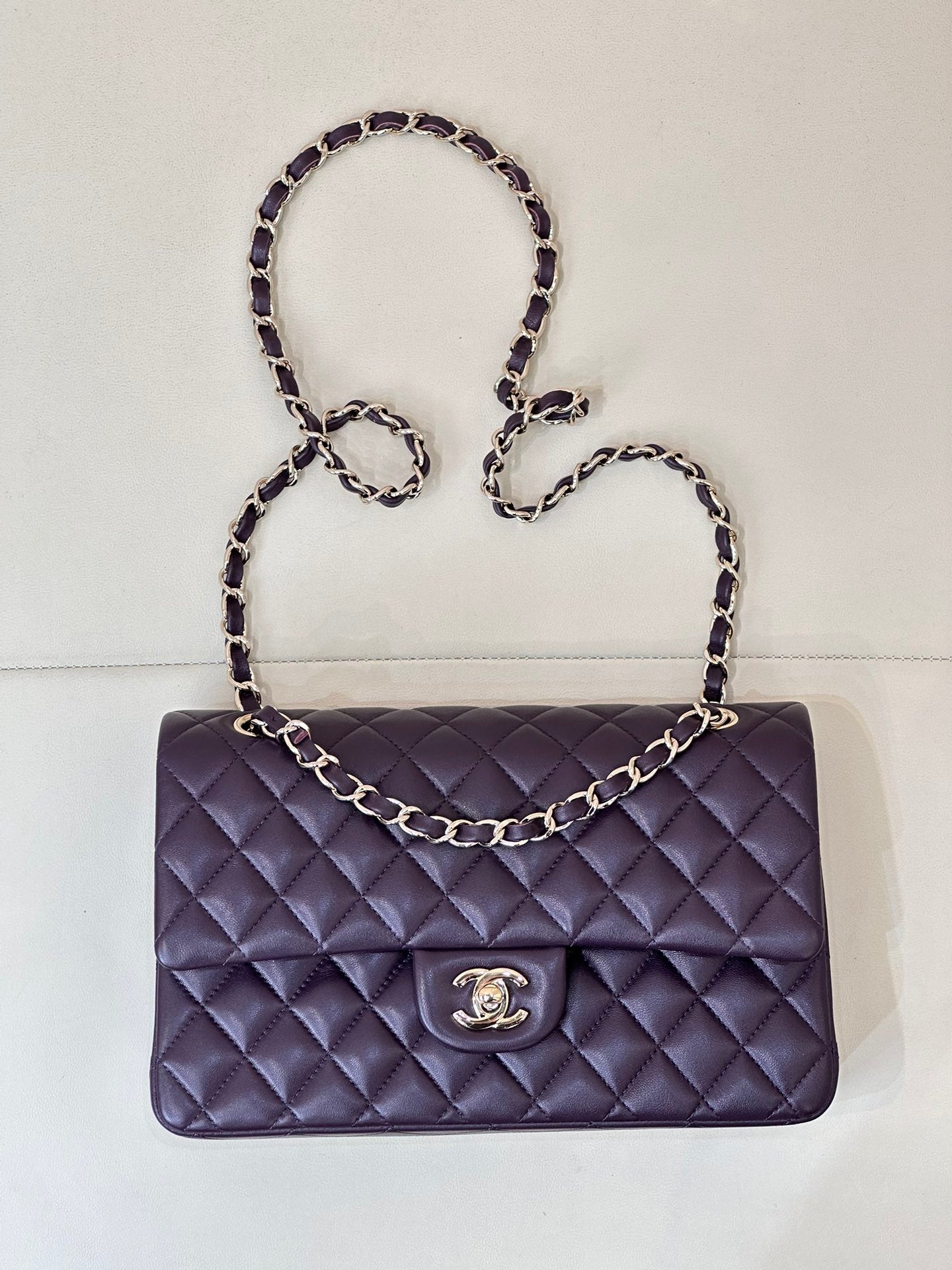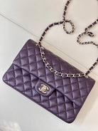 CLASSIC FLAP 25CM VIOLET LAMBSKIN LIGHT GOLD HARDWARE