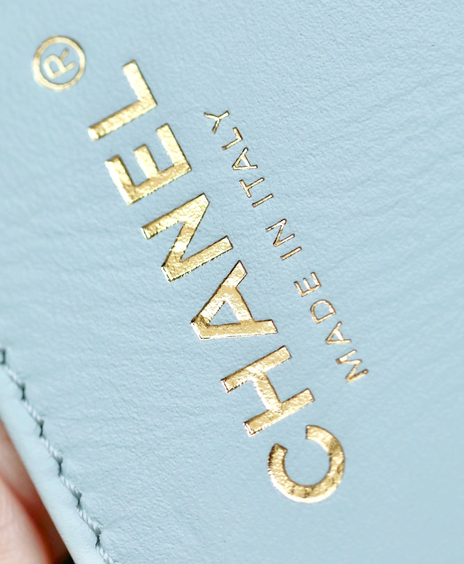 - Color: Lighr Blue, Gold hardware