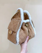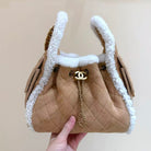 CC 25C Hobo Bag 30cm Brown White Suede Wool Gold Hardware