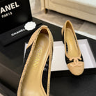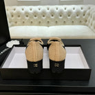 CC 25P Ballet Heel 50mm Black Beige Raffia Large Logo