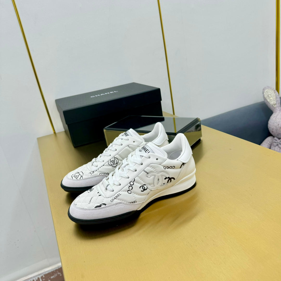 CC Toe Sandals White Mix Camellia Pattern Leather 299536