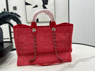 CC Deauville Tweed Bag Red Leather Silver Hardware 11