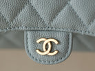CC FLAP CARD HOLDER 11.3 LIGHT BLUE GRAINED CALFSKIN GOLD ICON