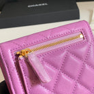 CC FLAP CARD HOLDER 11.5 HOT PINK GRAINED CALFSKIN GOLD ICON
